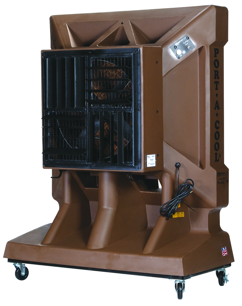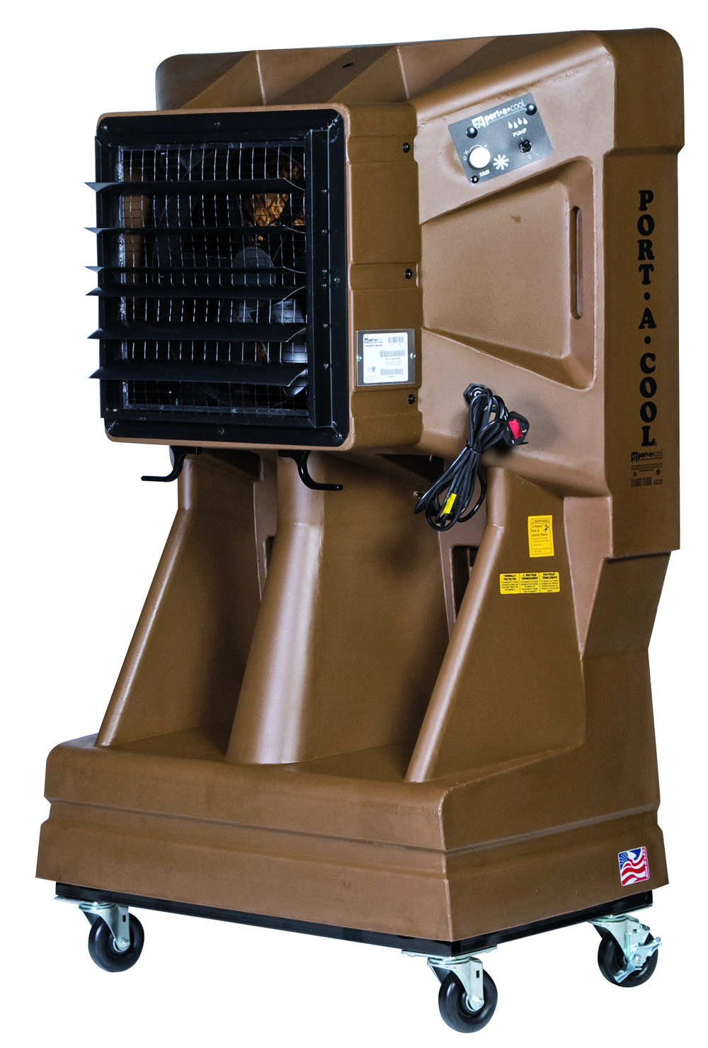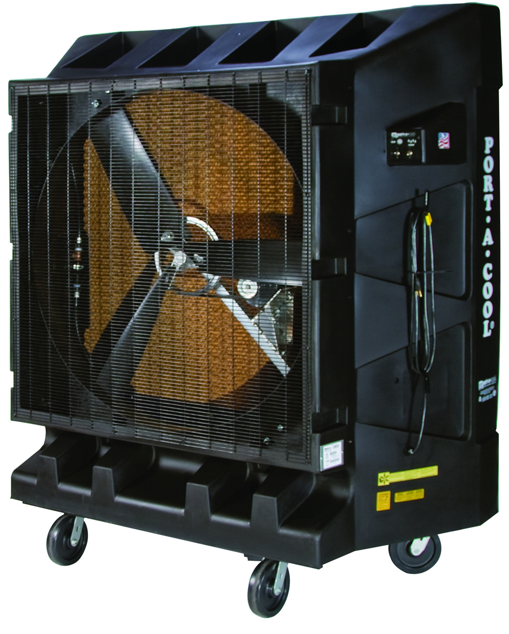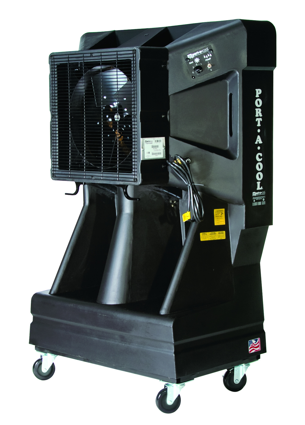 Port-A-Cool® products are portable evaporative cooling units that use natural evaporative cooling to lower temperature up to 30 degrees F. Port-a-Cool products use tap water and 115v. Port-A-Cool units are extremely effient and economical to operate. Also available, Hazardous Location models and Pneumatic Models for high risk area's.